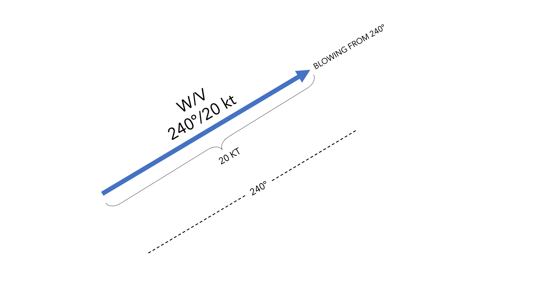 Let’s take wind as an example. It is not enough to say that there is a 20 kt wind, we also have to indicate where that wind comes from in order to fully define it. For example, the wind comes from 240º/20kt. In this way we have defined the direction and sense (it blows from 240º) along with the magnitude of the wind vector (20 kt). This pair of elements, wind and velocity, always goes together in order to be able to fully define the wind.